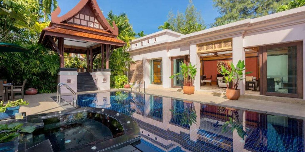 Курорт Banyan Tree Phuket расположен на белоснежном пляже в заливе Банг Тао и идеально интегрирован в тропический ландшафт — отсюда ощущение полного уединения и приватности для каждого гостя. Всего здесь 218 вилл с собственными бассейнами; здания с островерхими крышами спроектированы с отсылкой к традиционным тайским храмам.