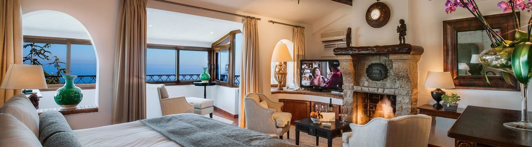 В отеле 45 номеров, включая эксклюзивные сьюты, некоторые — с собственными инфинити‑бассейнами и джакузи. Дизайн каждого номера уникален благодаря каменным аркам, абстрактным полотнам, антикварным вещицами — неизменен лишь живописный вид на море или горы.