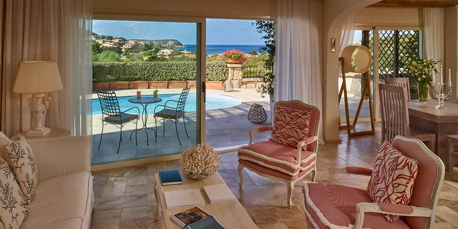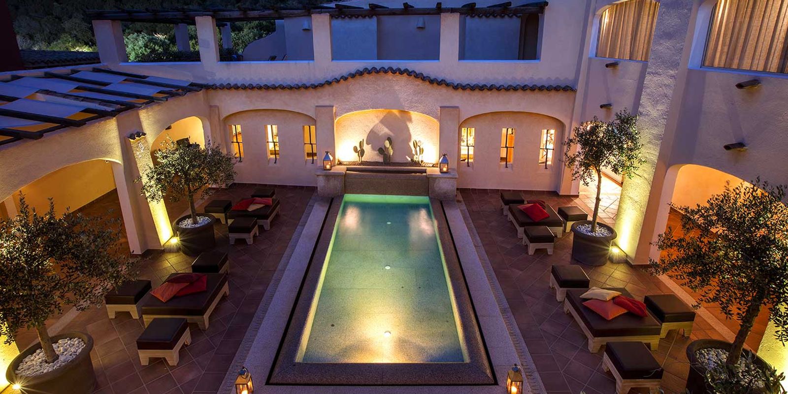 Отель уютно вписан в зелёный средиземноморский парк в двух шагах от белоснежного пляжа, где есть эксклюзивная зона для гостей с шезлонгами и зонтами. Архитектура и внутреннее убранство комплекса воссоздают вековые традиции Сардинии: аркады, просторные холлы и веранды, прохладные каменные полы, отделка из натурального дерева и роскошные интерьеры сочетают классику и современный дизайн.