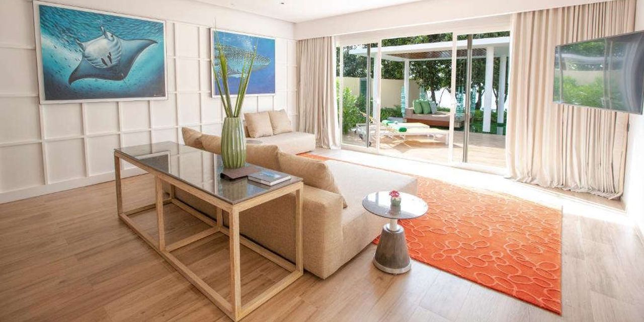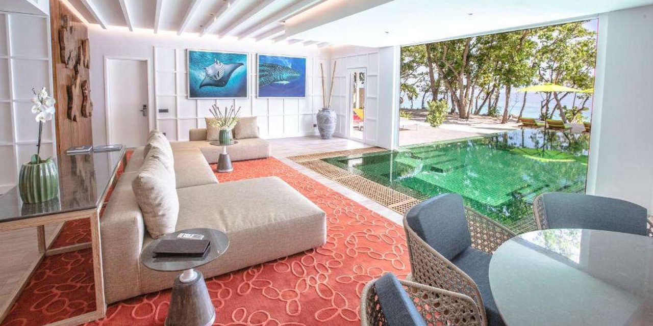 Все виллы оформлены в современном тропическом стиле и органично вписываются в ландшафт. В каждой есть просторная спальня с кроватью king-size или смежная комната, гардеробная, рабочая зона, ванна для двоих и душ под открытым небом. Интерьеры выдержаны в уютной, расслабленной эстетике, с использованием природных материалов.