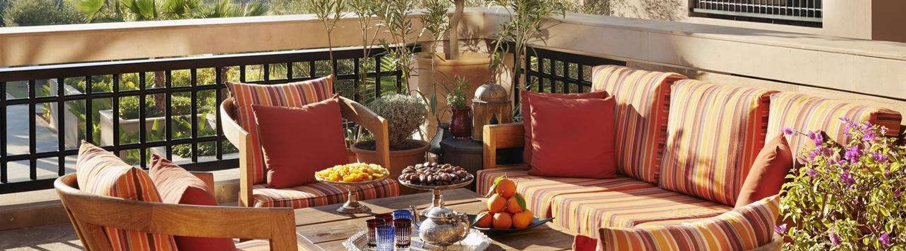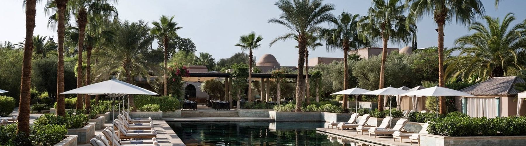Four Seasons Resort Marrakech — роскошный курорт, утопающий в садах на фоне Атласских гор. Он расположен на полпути между исторической мединой и современными районами Марракеша, и локации соответствует его концепция: традиционный марокканский стиль удачно сочетается с элементами современного дизайна.
