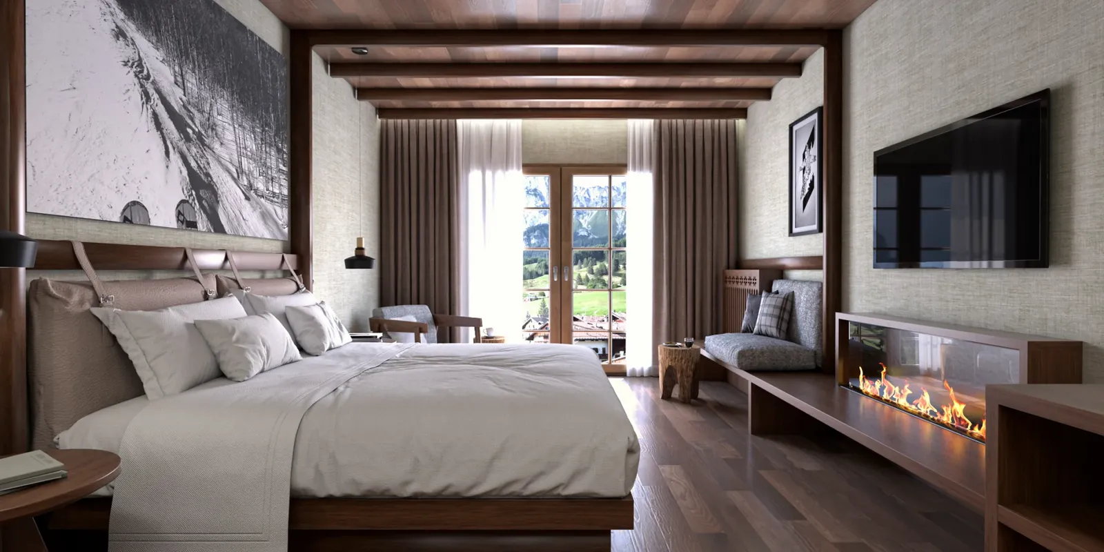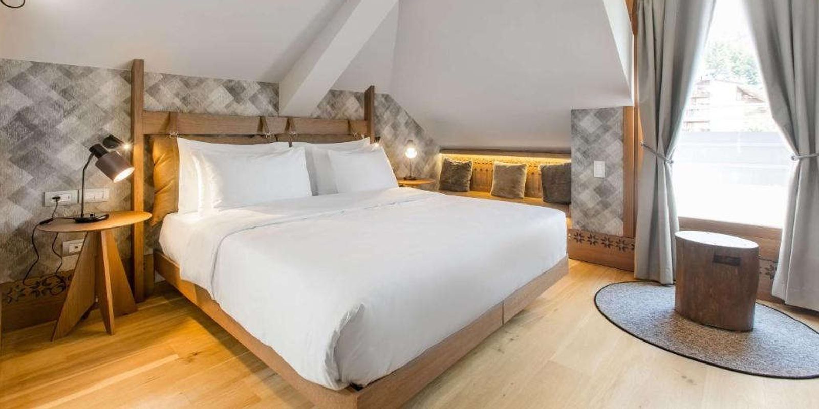 После недавней масштабной реновации отель предлагает 132 номера и сьюта в современном альпийском стиле: теплая цветовая палитра, натуральные дерево и камень, благородные ткани, много света и воздуха. Из больших окон открывается воодушевляющий вид на горы и долину Ампеццо.