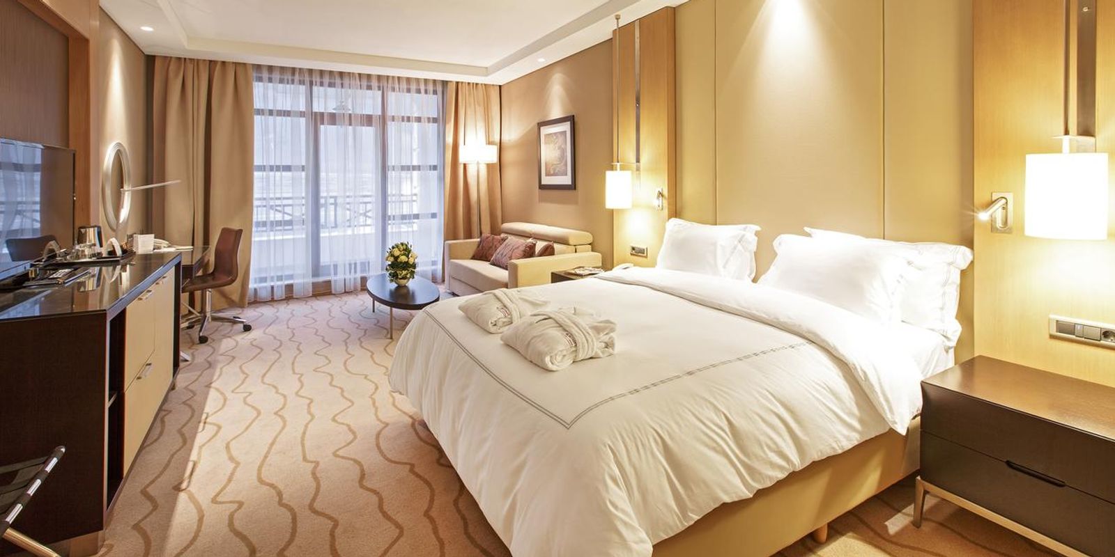 На территории отеля работает ресторан L’Olivo, специализирующийся на блюдах средиземноморской кухни, в том числе пицце, приготовленной на открытой кухне. Для камерных встреч и отдыха есть VIP-зал и уютный лобби-бар, предлагающий коктейли, десерты и креативные закуски. Роскошный спа-центр Soul SPA включает крытый бассейн, хаммам, сауны и массажные кабинеты. Рядом находятся казино, магазины и рестораны, а также инфраструктура для активного отдыха на курорте.