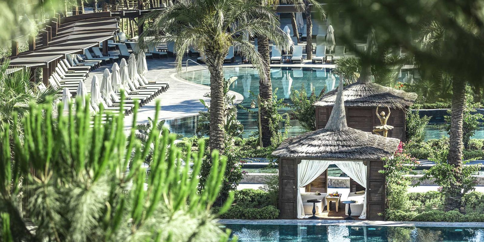 Хотя самому курорту уже более 10 лет, 56 вилл появились здесь недавно. Все они (от двух- и трёхспальных до роскошных резиденций с пятью спальнями) названы в честь греческих богов. На каждой есть собственный бассейн, просторная терраса, кухонная зона и обеденный павильон под открытым небом. Интерьеры выполнены в той же стилистике, что и номера и люксы в главном здании: светлые тона, современный дизайн, мрамор, дерево, льняные текстуры и панорамные окна с видом на море или сад. Гостям предоставляется персональный батлер, отдельная пляжная зона и услуга ин-хаус шефа. Это идеальный вариант уединённого премиального отдыха с доступом ко всей инфраструктуре курорта.